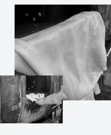 1頭のジビエレザーから革目を見ながら