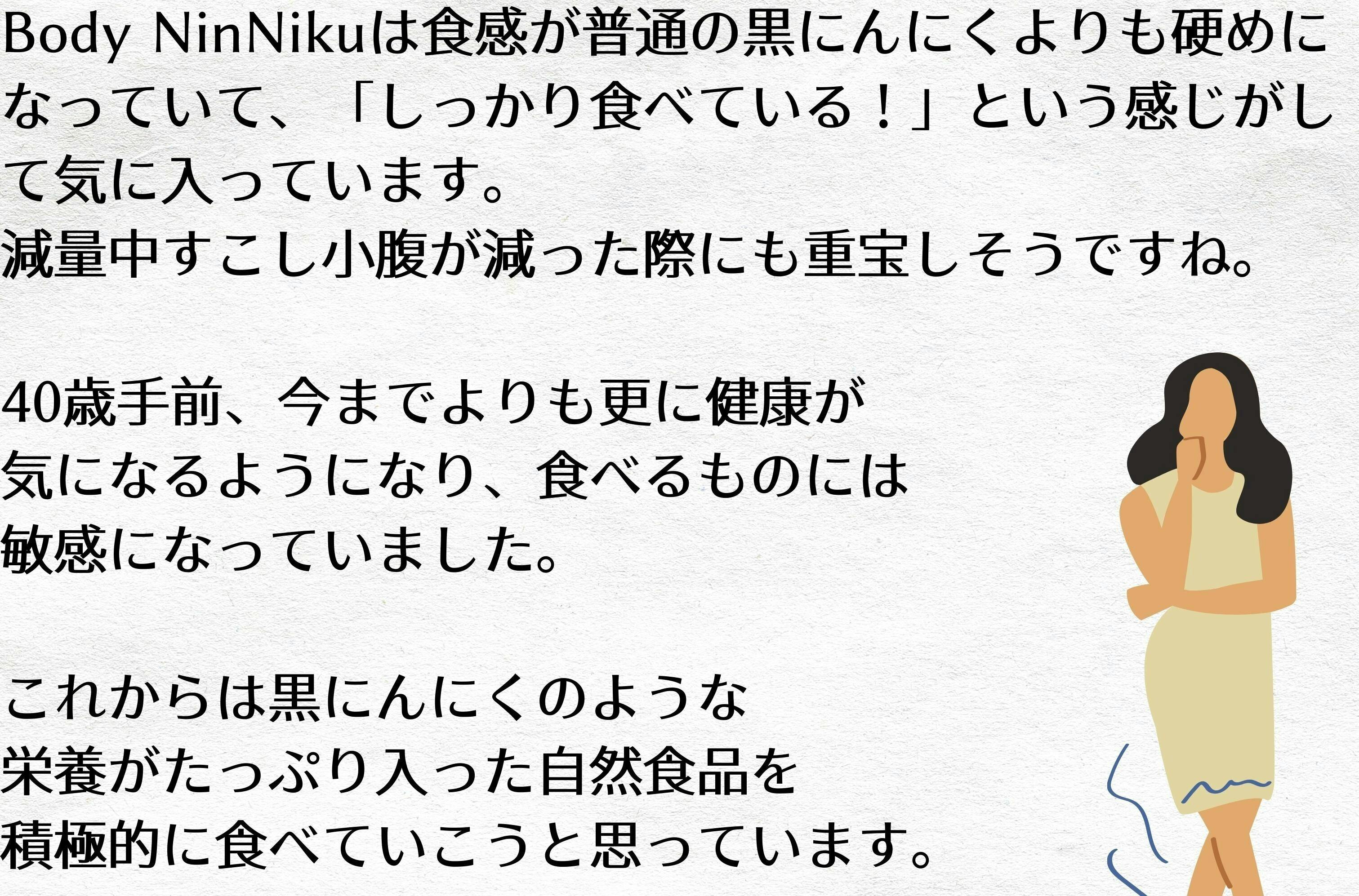 この度我々は日々カラダと向き合う方に向けた、ナチュラル健康食品「Body NinNiku KURO.」(黒にんにく)を新発売することになりました。