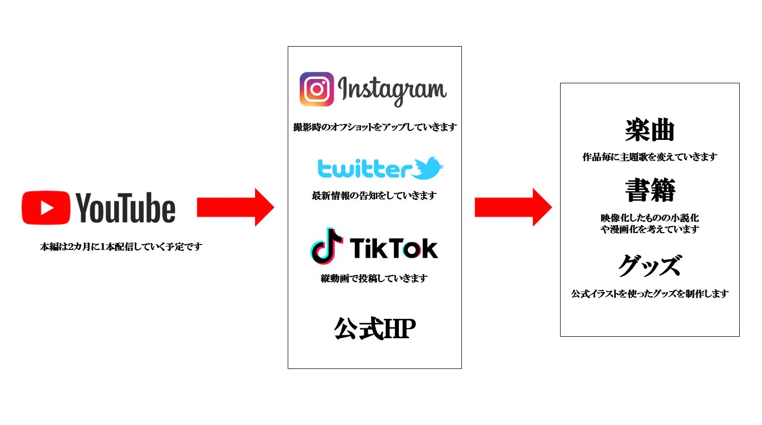 他SNSでの展開、公式イラストのグッズ販売、映像の書籍化等