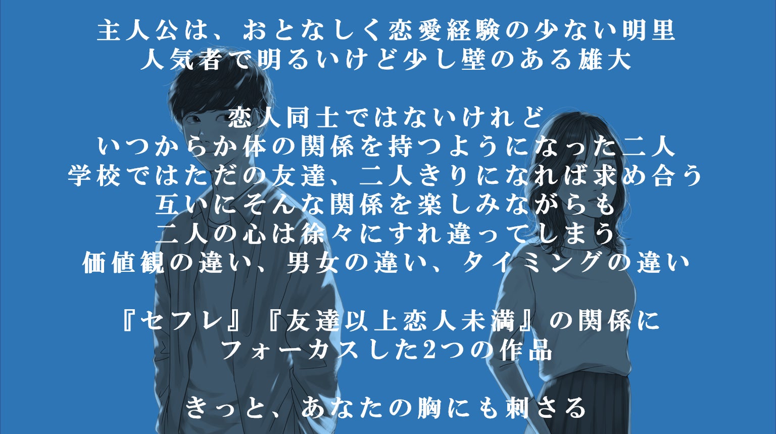 曖昧な関係と、探り探りの気持ちに揺れるリアルを2つの視点で描きました。