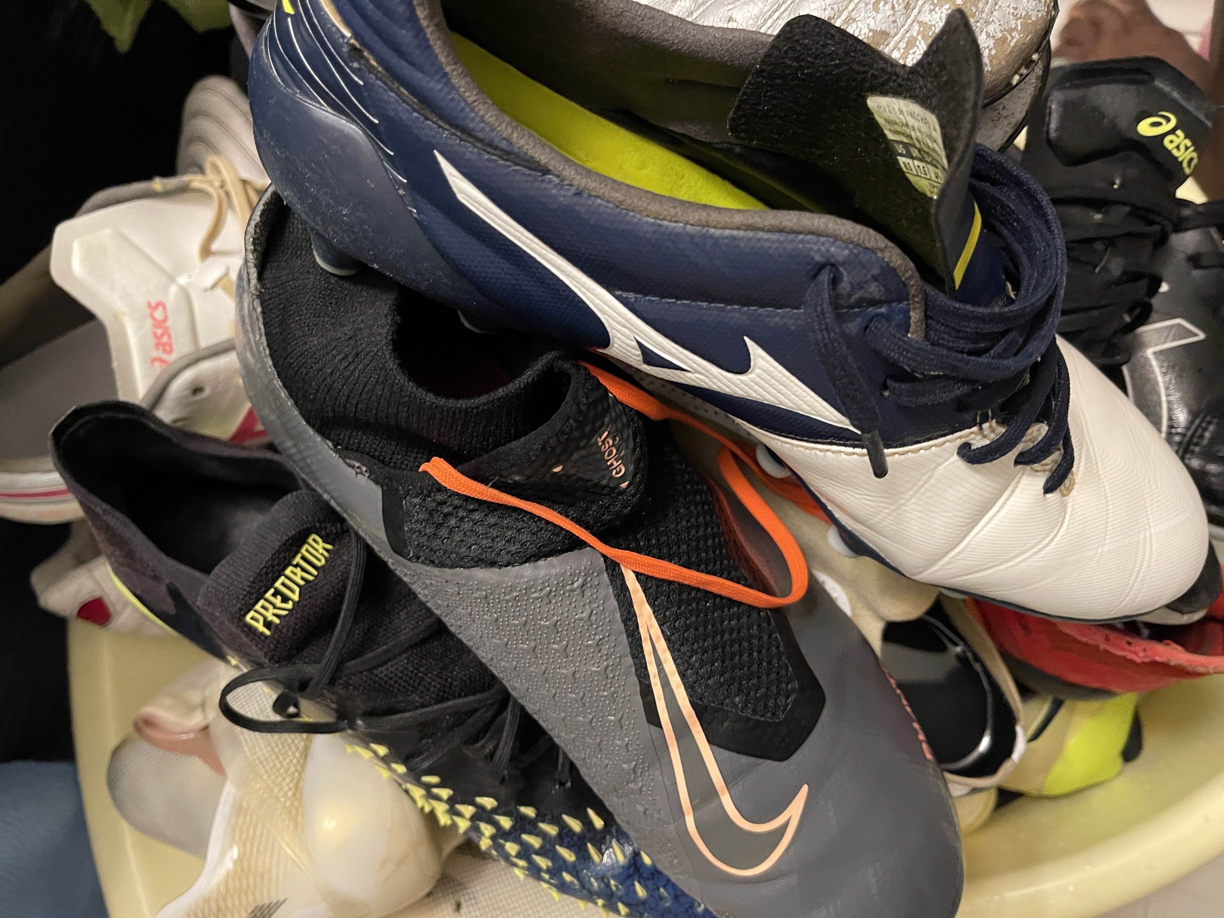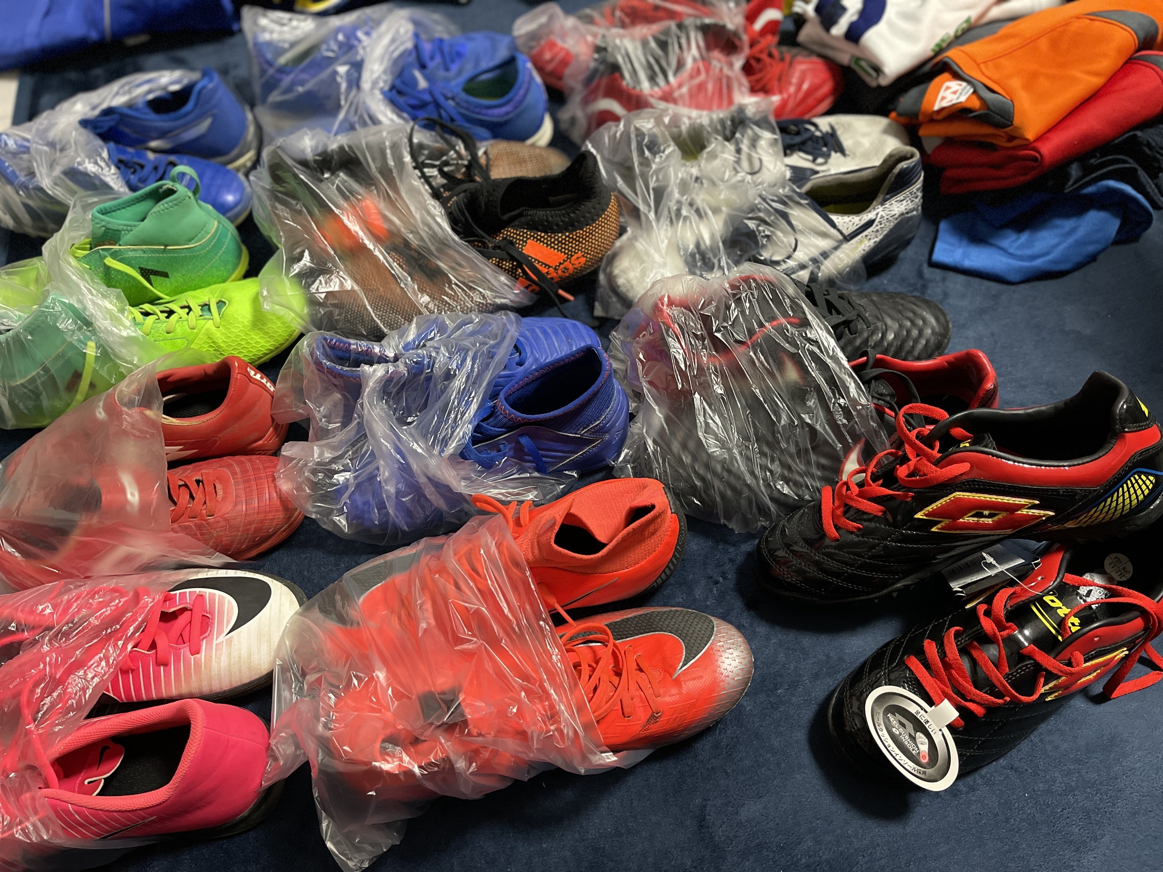 私が所属している京都の平盛西大久保FCや他の高校サッカー部、友人、知人やSNSで声かけして応答してくださった方々から中古のスパイクシューズやスポーツウェアをご支援頂きました。合わせて15箱の大型段ボール箱いっぱいに集まり、さらに5箱以上追加で集まる予定です。本当に心から感謝しています。