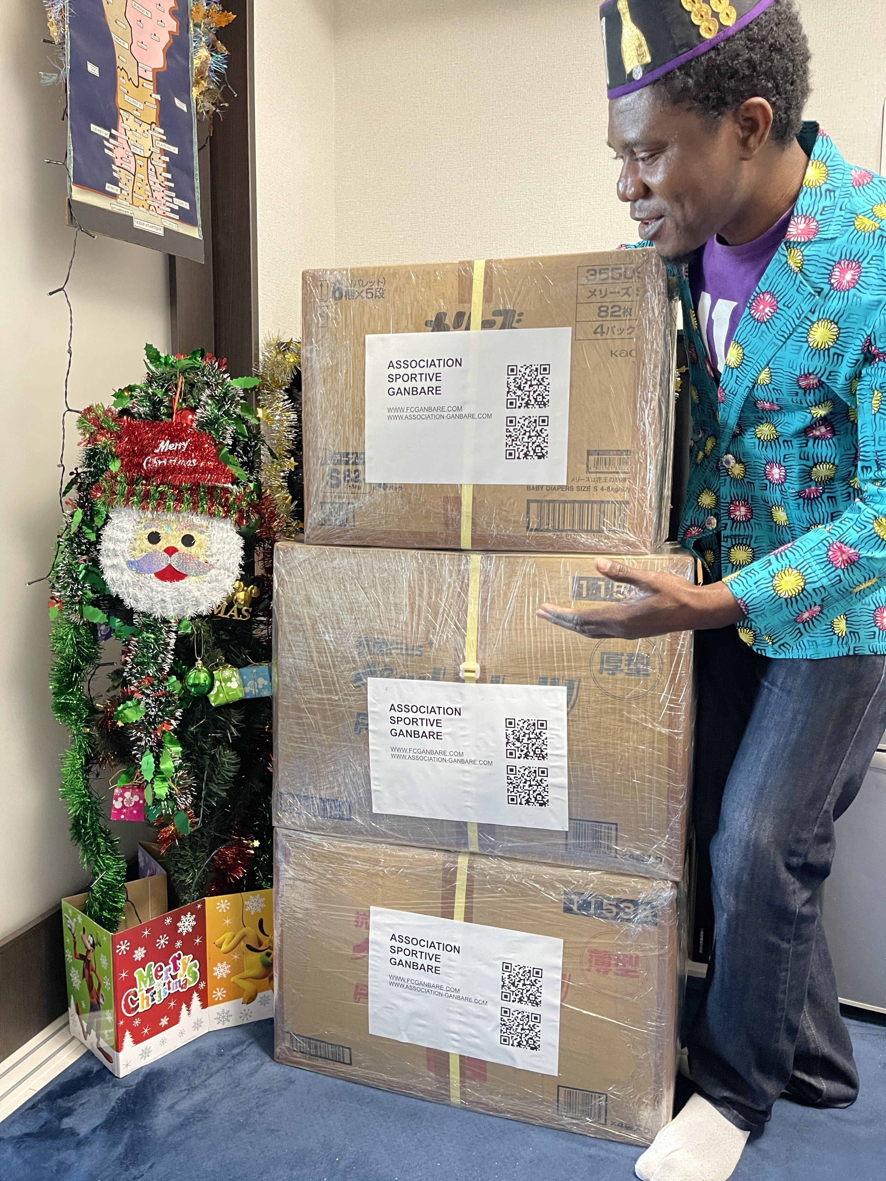 ベナン共和国コトヌー市在住のAssociation Ganbareスタッフ(私のきょうだい、アナゴノコーチ)が支援品を受け取り、管理します。2022年1月までに2回、私費で段ボール6箱分の支援品を発送しました。