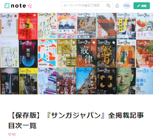 現代社会の様々な課題に仏教の知見を掛け合わせて考察を深める特集を組み、仏教関係者はもちろんのこと、一般の幅広い方々にもご愛読いただき、2020年11月までで「36号+別冊5号」の合計41号の『サンガジャパン』がこの世に誕生しました。