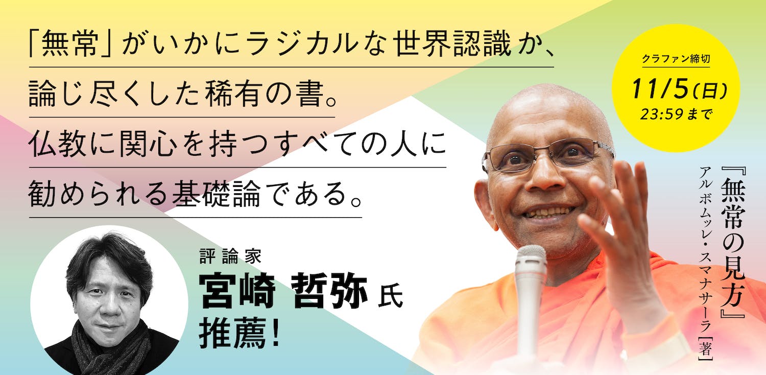 宮崎先生、貴重なご推薦文を誠にありがとうございます! この短い文章に凝縮されているとおり、仏教に関心をもつすべての方々に『無常の見方』をぜひ手に取っていただきたく、サンガ新社ではクラウドファンディングで広くご予約を呼びかけています。