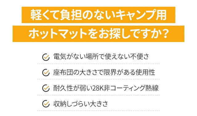 寒くなると探すキャンプ必需品、ホットマット。必ず必要だけど、サイズが大きかったり、不便な使用性で惜しい点がたくさんありました。