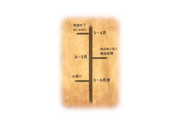 製造完了後、輸入にかかる時間は最大2~4週間程度で考えています。