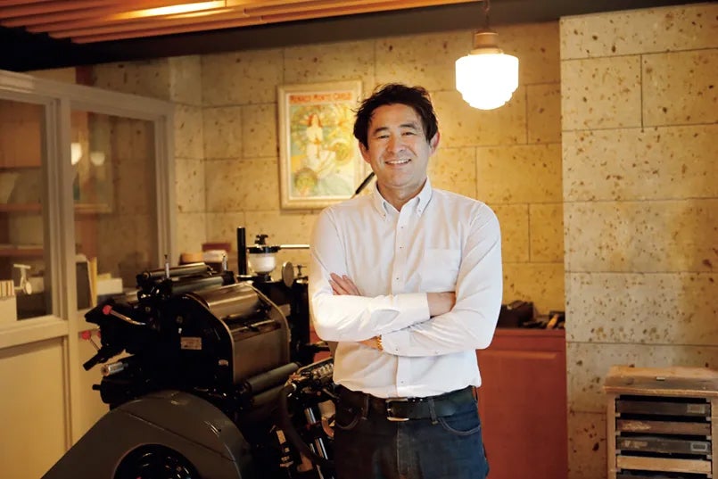 2階のブリューパブ にて1960年製ドイツの活版印刷機と國澤