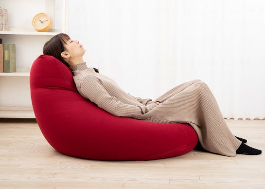 頭の方に体重を掛けると、リクライニング状態になり、仮眠しやすい態勢に変形します。ビーズに包み込まれながら、気持ちよくお昼寝に。