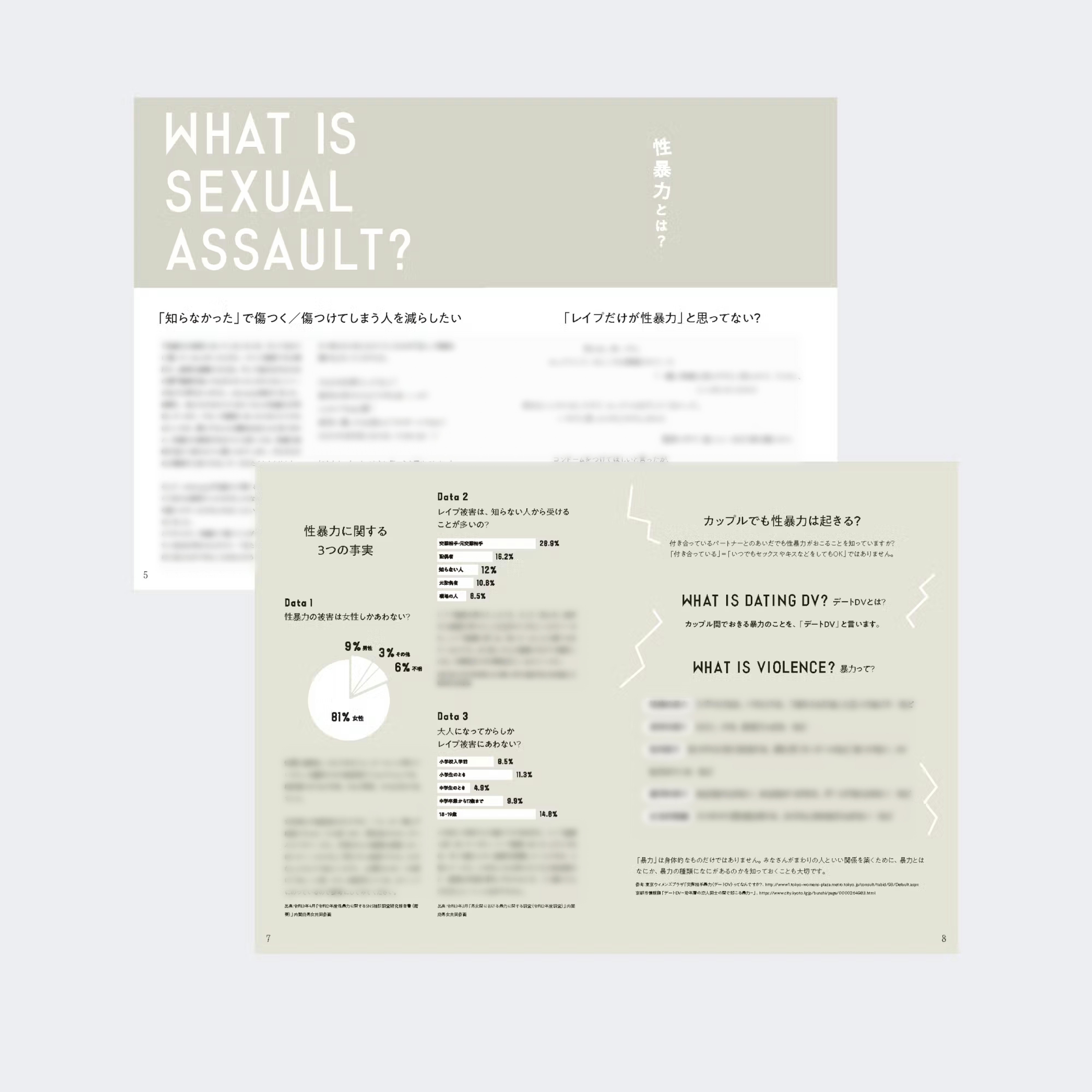 他にも、被害にあってしまったときに頼れる相談先リストや、性的同意チェックリストなど、すべての年代/性別/セクシュアリティを持つ人にも役に立つ情報を詰め込みました。