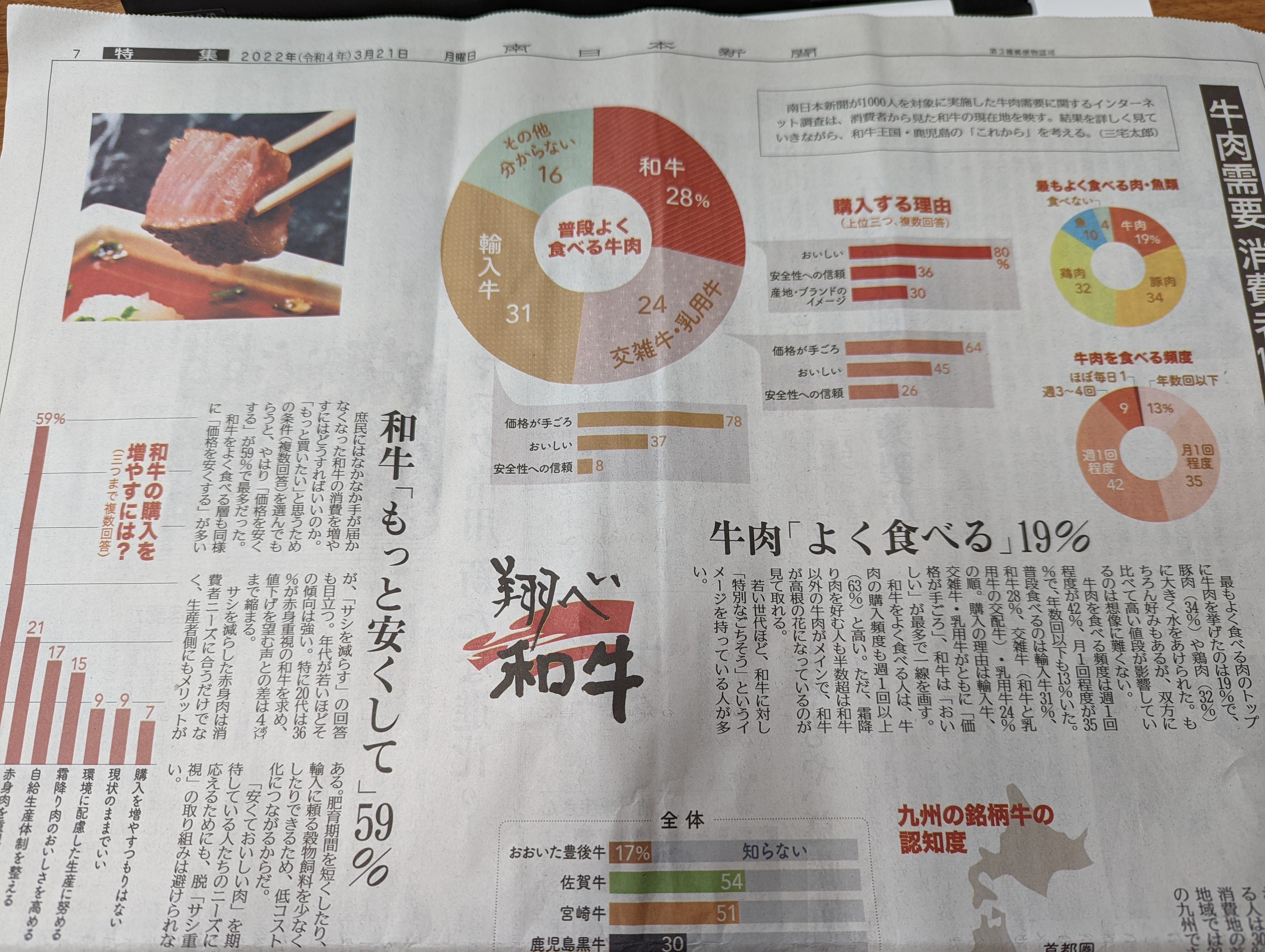 先日、地方紙「南日本新聞」に和牛の話題が掲載されていました。
