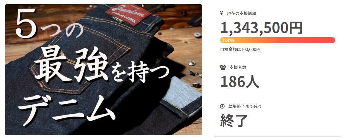 【Jeanism Produced by EDWIN/5つの最強を持つデニム】は目標の1343%を記録。