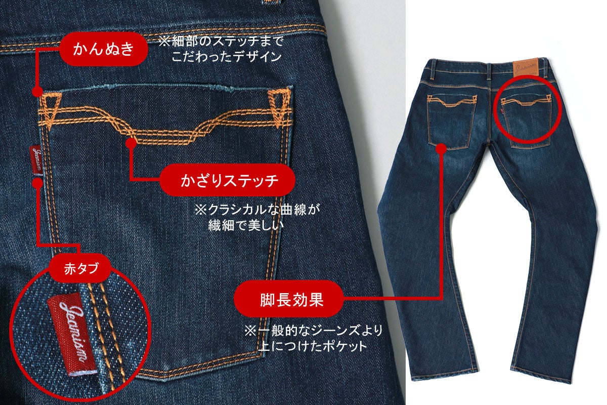 【Jeanism】の赤いタブもさりげないアクセントになっています。
