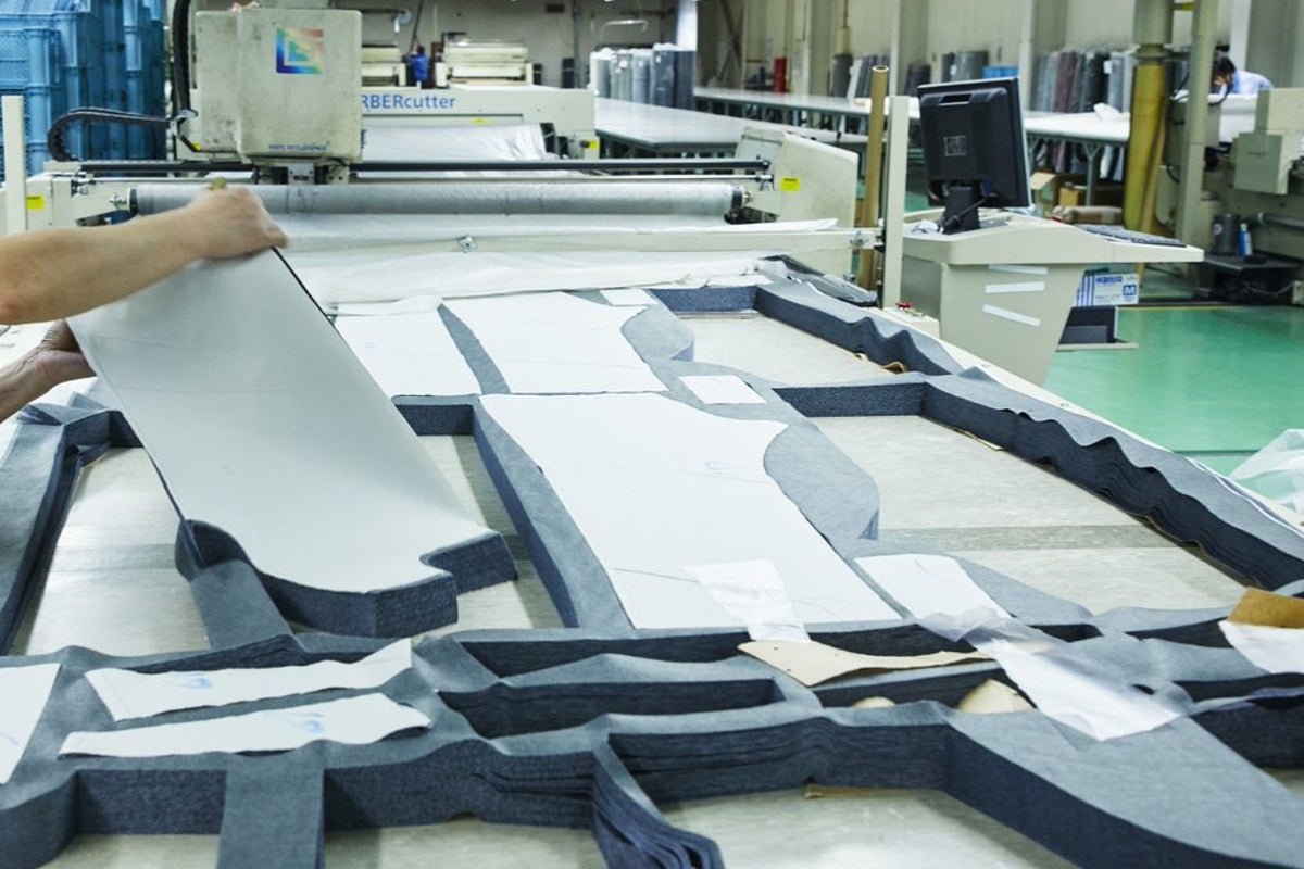 縫製工程でも平面から起こされているので各パーツの縫い合わせも比較的容易で、安定して画一的な製品を生産することが可能で、サイズピッチなど各種の修正もしやすく、仕上がり寸法も安定します。