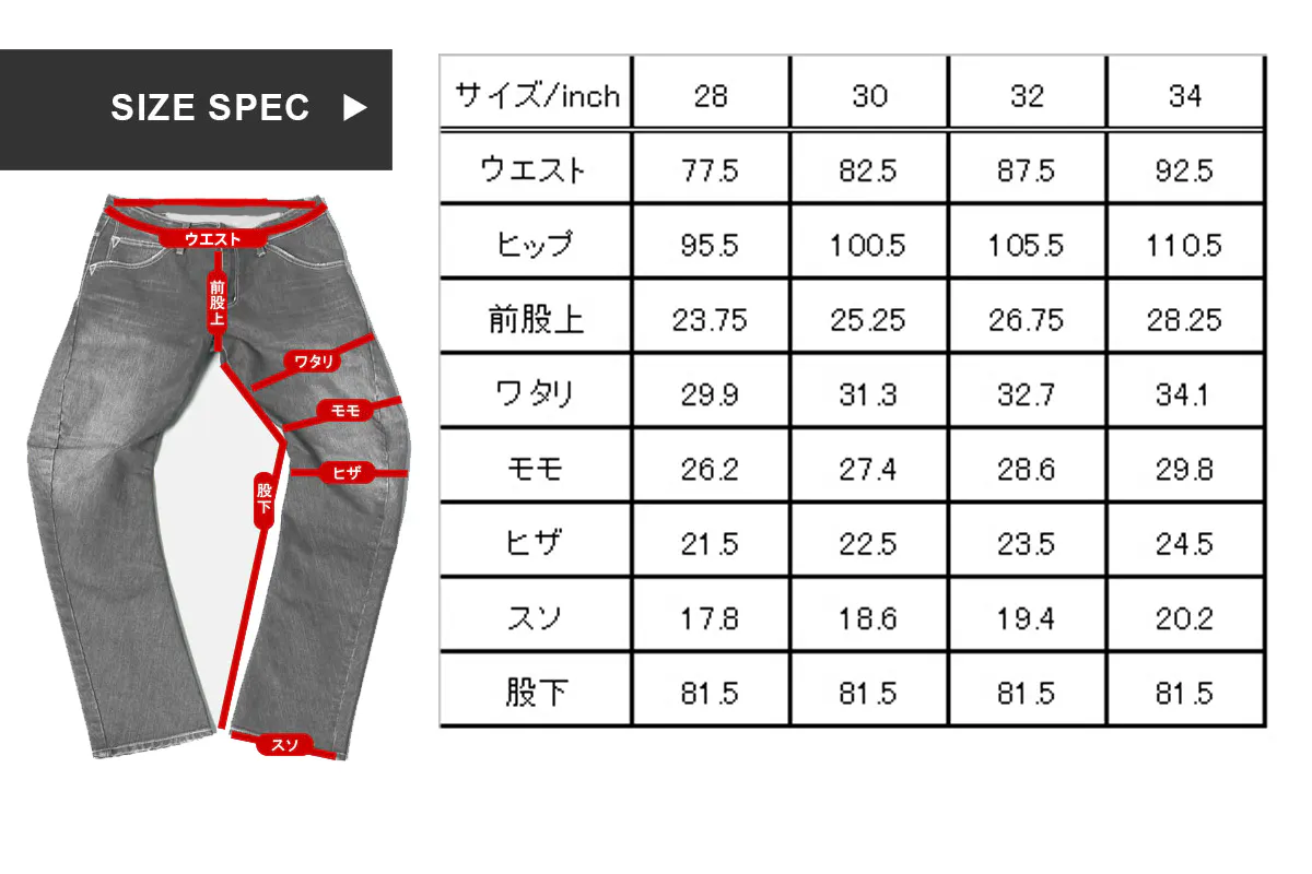 *サイズ展開・スペックは5ポケットタイプと同様です