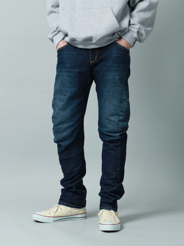 3D立体裁断5PKTジーンズよりも軽くて伸びるストレッチ素材を使用。