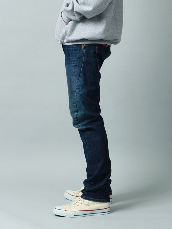 動きやすさを追求しすぎてストレッチ素材の混率を上げすぎると、生地が柔らかくなりジーンズ独特のメリハリある色味が表現しにくくなりますので、あくまでジーンズであることを体感できるほどよいストレッチデニム素材となっております。