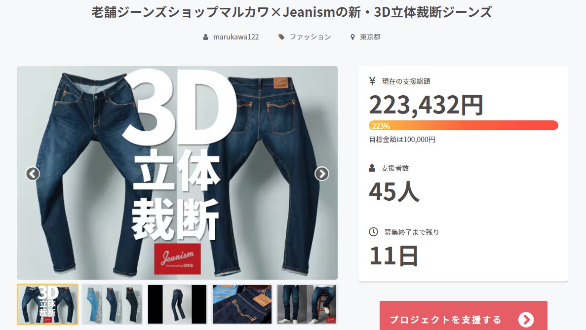 【老舗ジーンズショップマルカワ×Jeanismの新・3D立体裁断ジーンズ】プロジェクトをご覧いただきまことにありがとうございます。