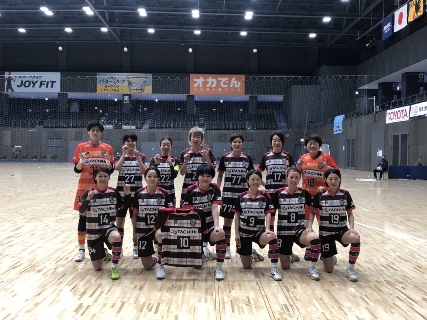 3/4~6に北海道・帯広のよつ葉アリーナ十勝にて行われたJFA第18回全日本女子フットサル選手権大会の結果についてご報告致します。1回戦●3-4 アルコ神戸【得点者】20分 斉下 遼音24分 櫻庭 里紗33分 斉下 遼音上記の結果により、日本一を目指して挑んだ全国大会は1回戦敗退となりました。同じ日本女子フットサルリーグに所属する、強豪アルコ神戸と初戦から対決となり、後半巻き返すもあと一歩及ばず勝利を掴むことができませんでした。この大会も以て退団や引退をする選手もいるため、より一層チーム一丸となって戦う中で、改めてアスレレディースというチームへの想い、そして大切なチームメイトの存在について実感することができました。たくさんのご声援ありがとうございました。この場を借りて感謝申し上げます。立川・府中アスレティックFCレディース一同