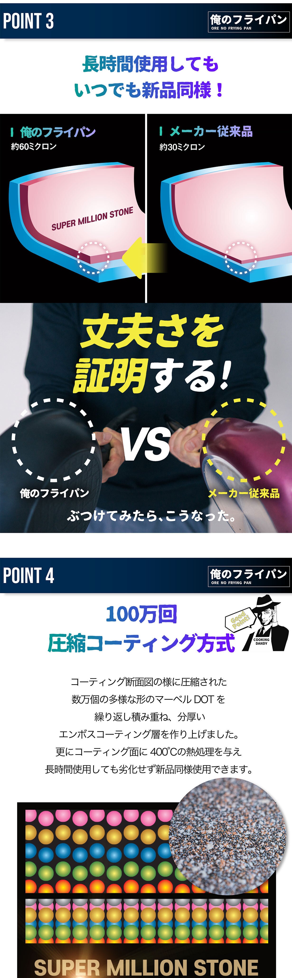 俺のフライパンは、ミリオンストーン加工と称しています。