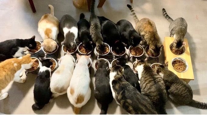 現在うるま市の保護猫カフェに50匹(成猫44匹、子猫6匹)南部に保護猫シェルター12匹、合計62匹の猫がいます