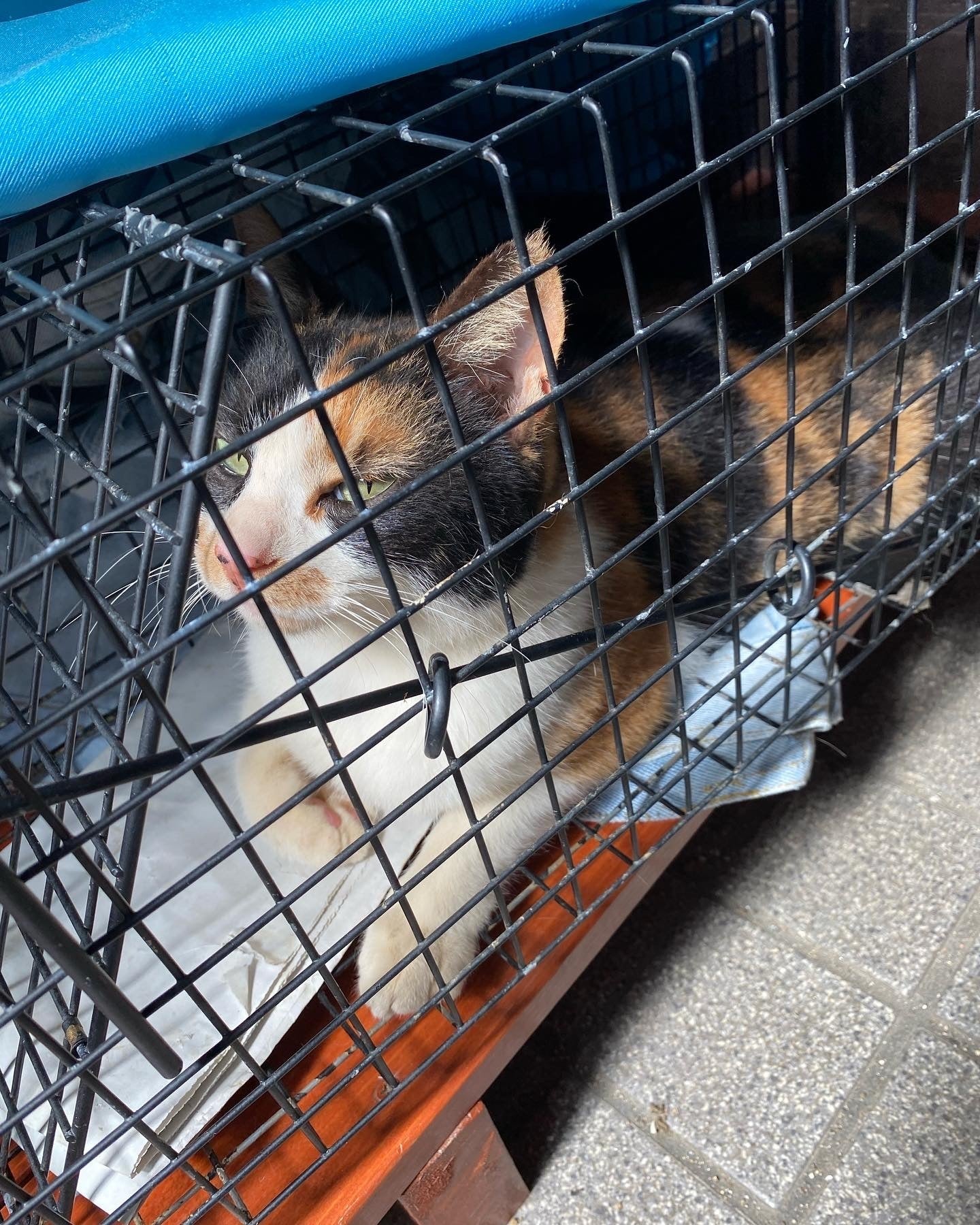 三毛猫はメスが多いし、ふっくらしたお腹なので、捕獲しました