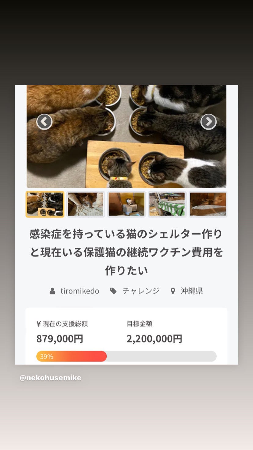 シェルターは必要ですし、感染予防には、ワクチンが必要です、しかし、多頭飼いでもあり、資金不足て