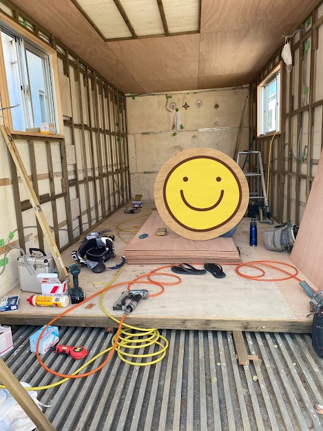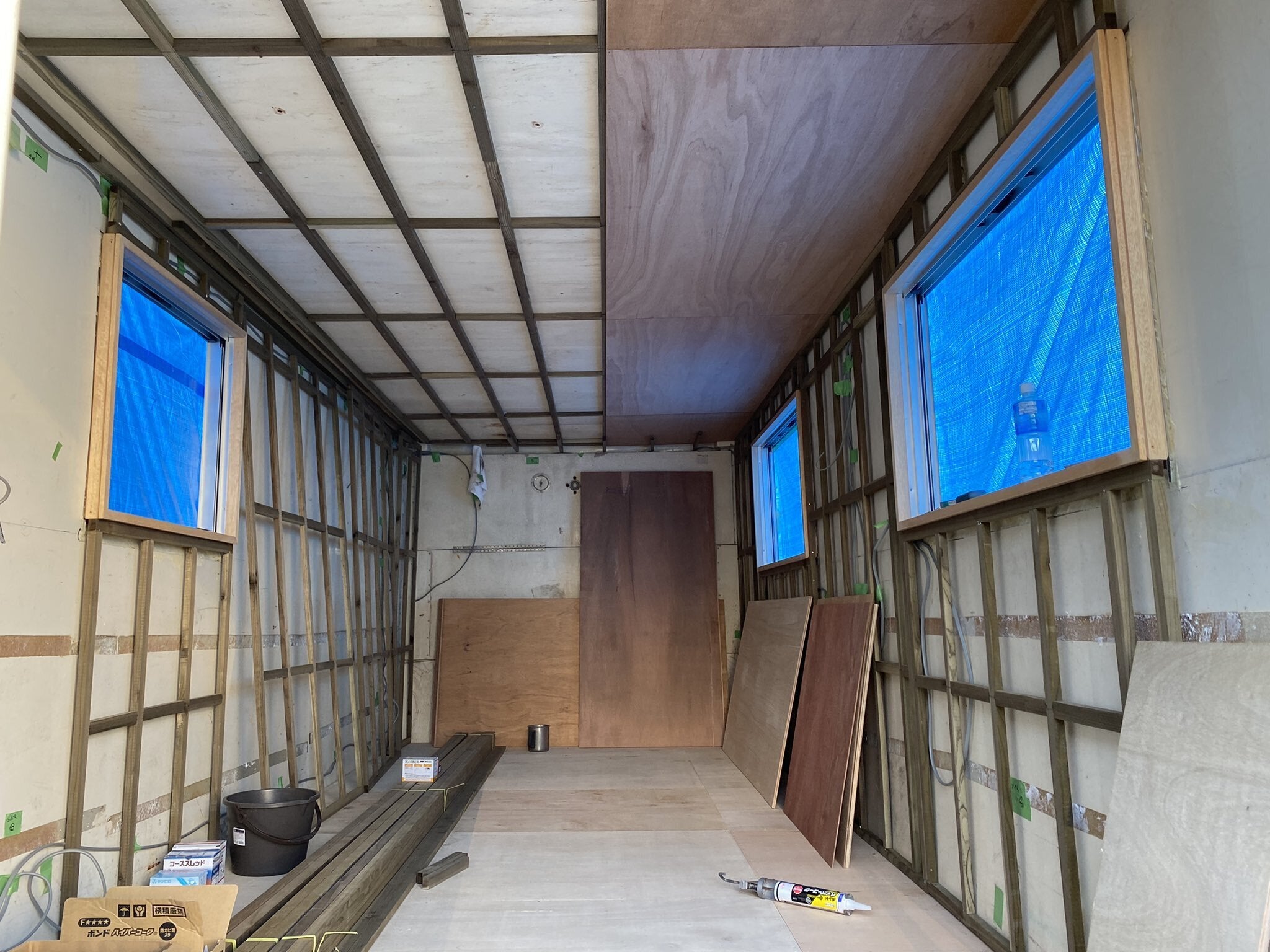 朝早くから来てくださって内装が進んでいます。壁に梁がふえました。 二人で進めていますが ほぼ一日かかっています休憩中だったので写真撮らせていただきましたありがとうございます どんなシェルターができるか楽しみです
