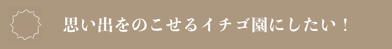 私たちにとって、観光イチゴ農園はイチゴを食べに来るという『思い出づくりの場所』と捉えています。