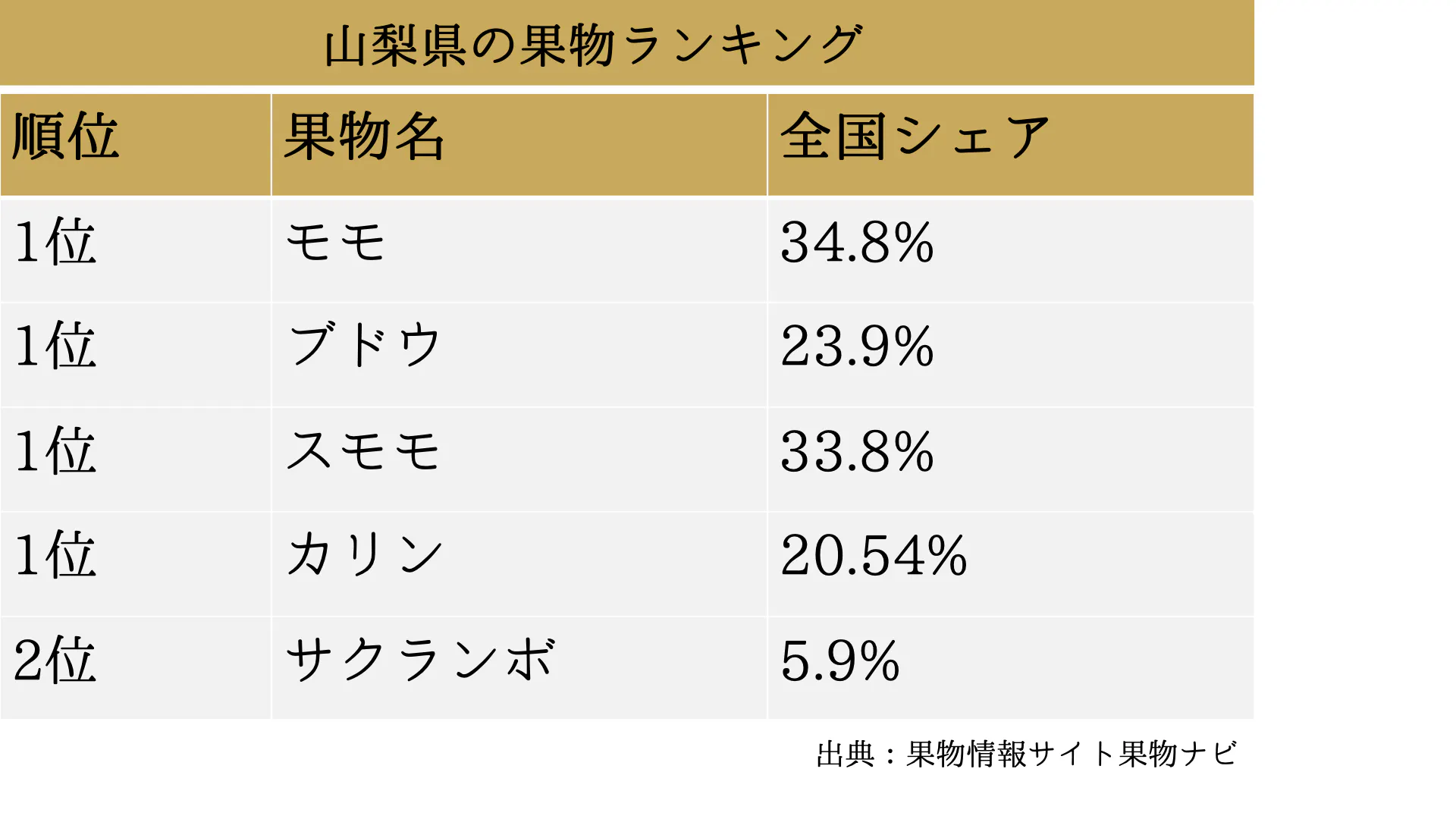 また、山梨県には生産量全国1位、2位の果物がいくつもあります。
