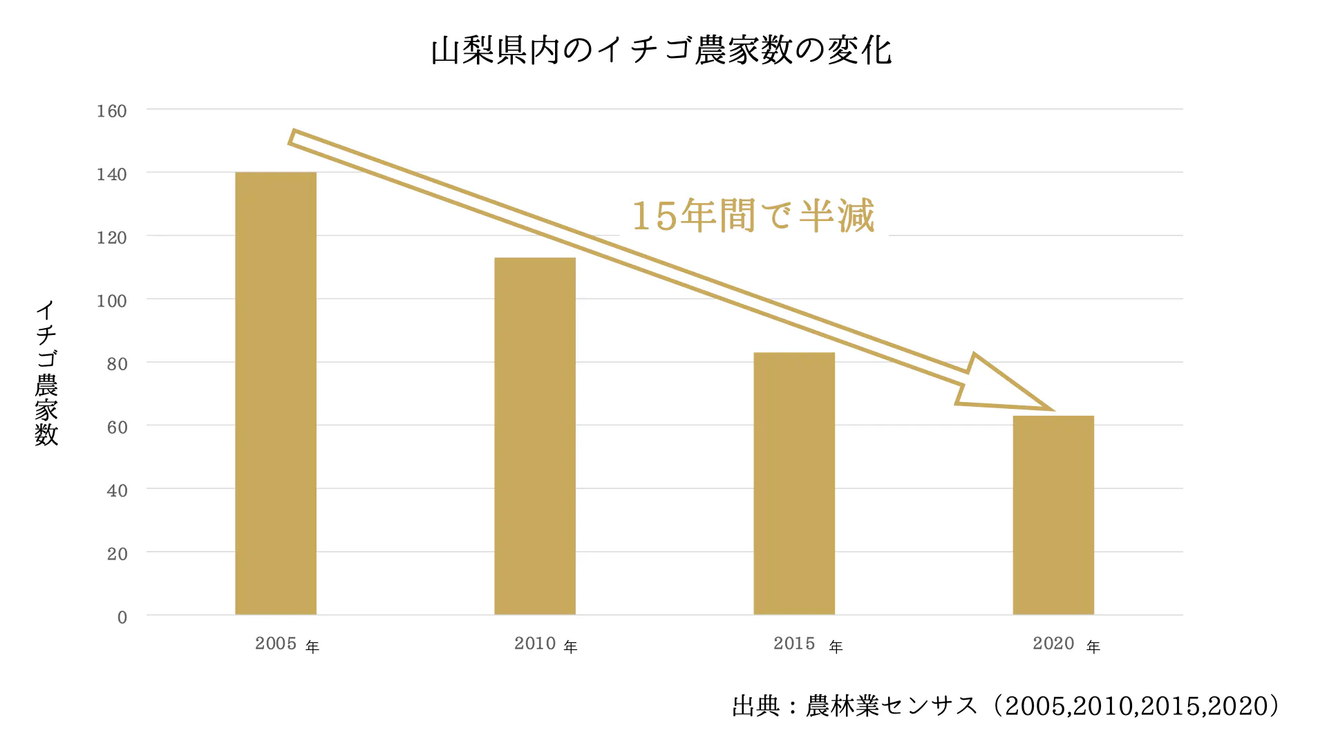 これらのデータからわかる通り、山梨県のイチゴ産業は衰退の一途をたどっています。