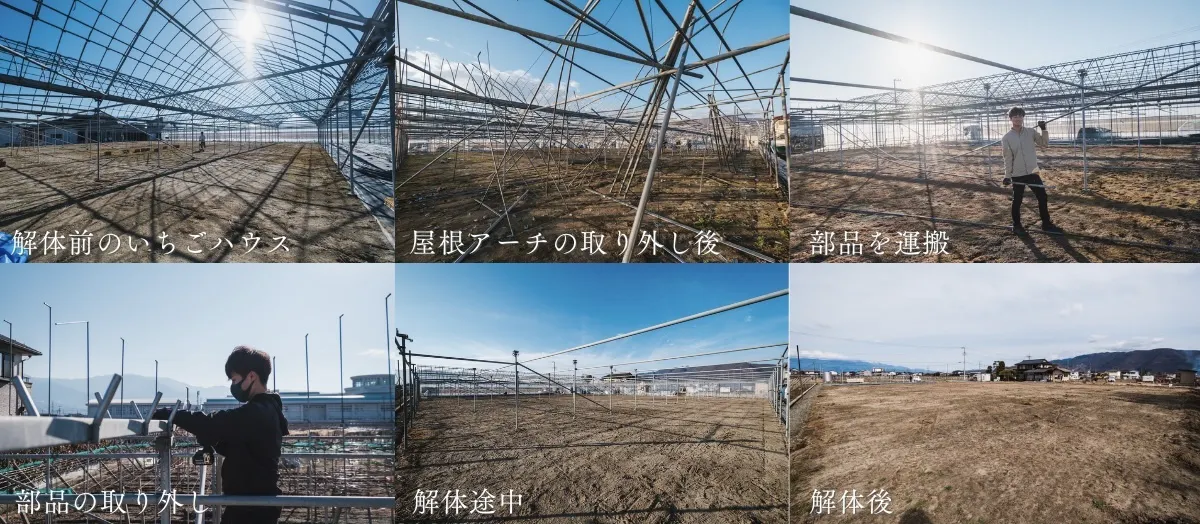 ハウスを解体して私たちのイチゴ園へと輸送しました。