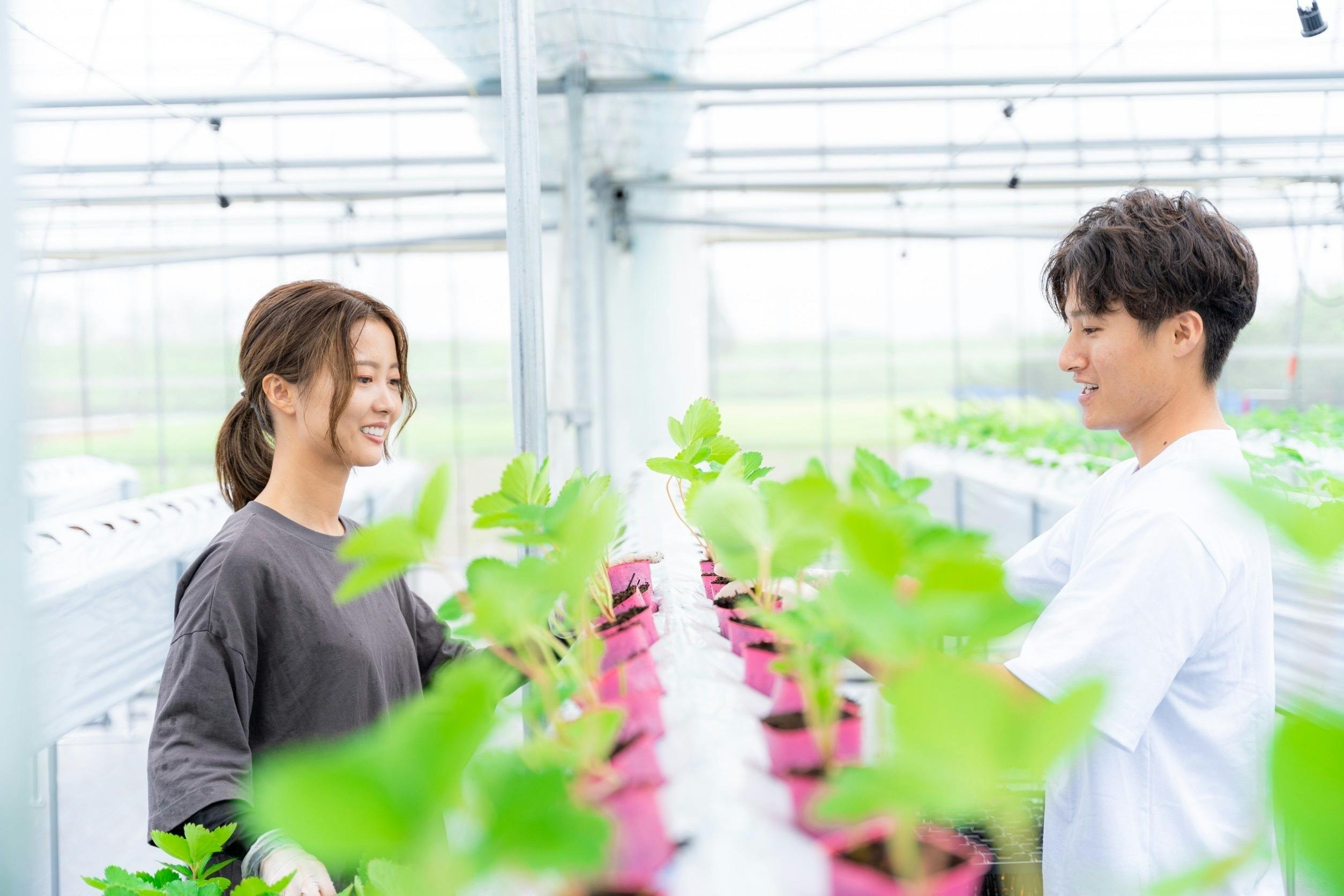 写真のように、今はイチゴの苗を植える作業をしています。(専門用語で「定植」と言います。)