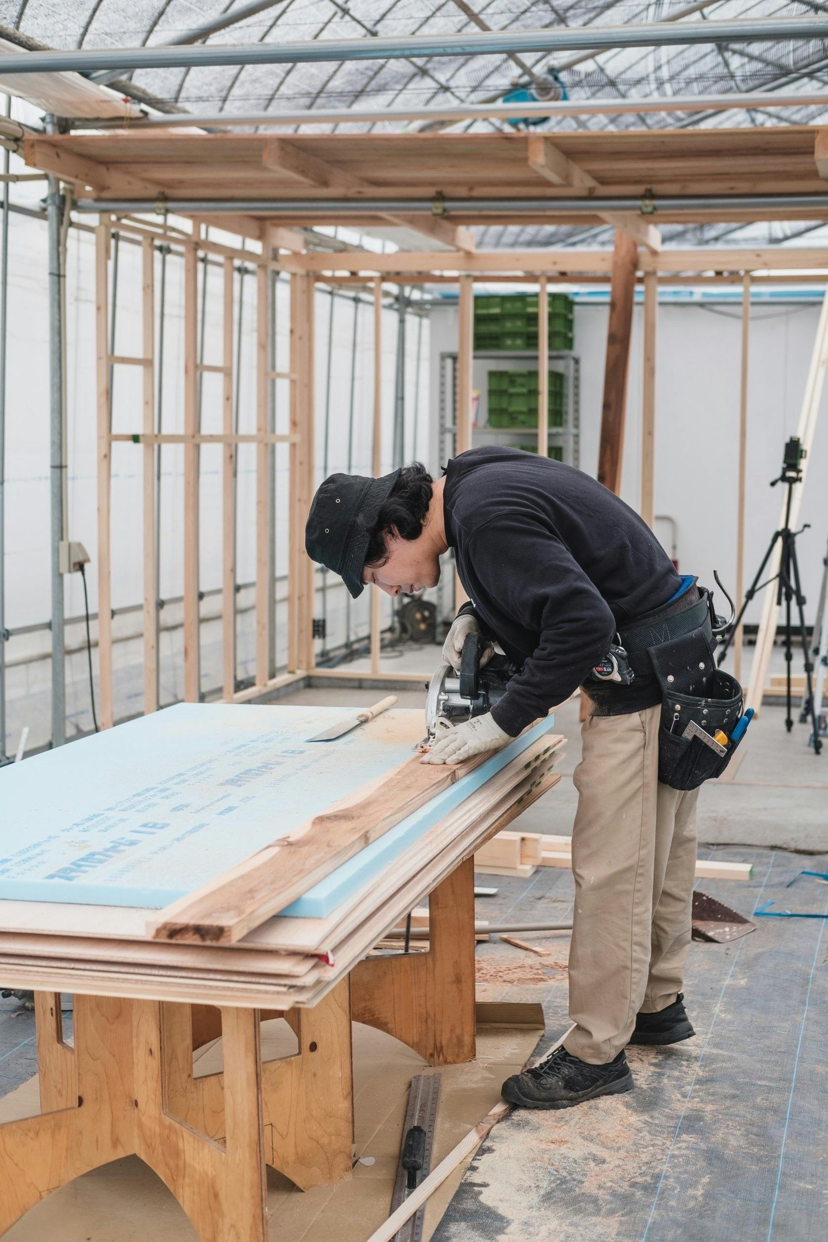 本日は、最後に受付カウンターの骨組みを取り付けて終了♪