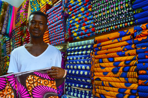 人々が来ている色鮮やかなアフリカの布たち