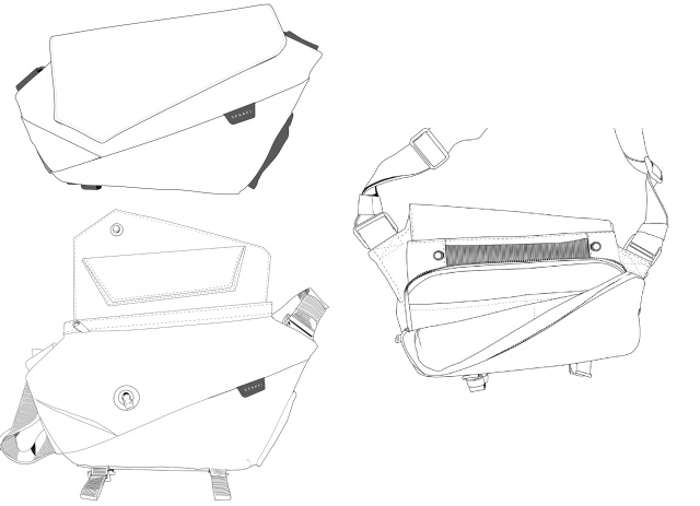 とにかくカッコよく、シャープでフラットなデザインを目指し、このSEKKEI S-slingを背負ったミドル世代が一回り若々しく見えるように、という想いをデザインに表現しました。