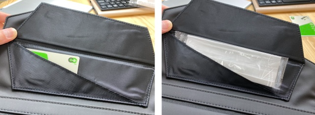 普段は背面のセキュリティコンパートメントにタブレットカバーを収納して持ち運んでいます。