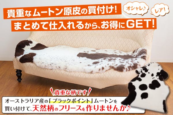 ムートンフリースの中でも、希少価値が高い黒のブチが入った「ブラックポイント」のフリース。