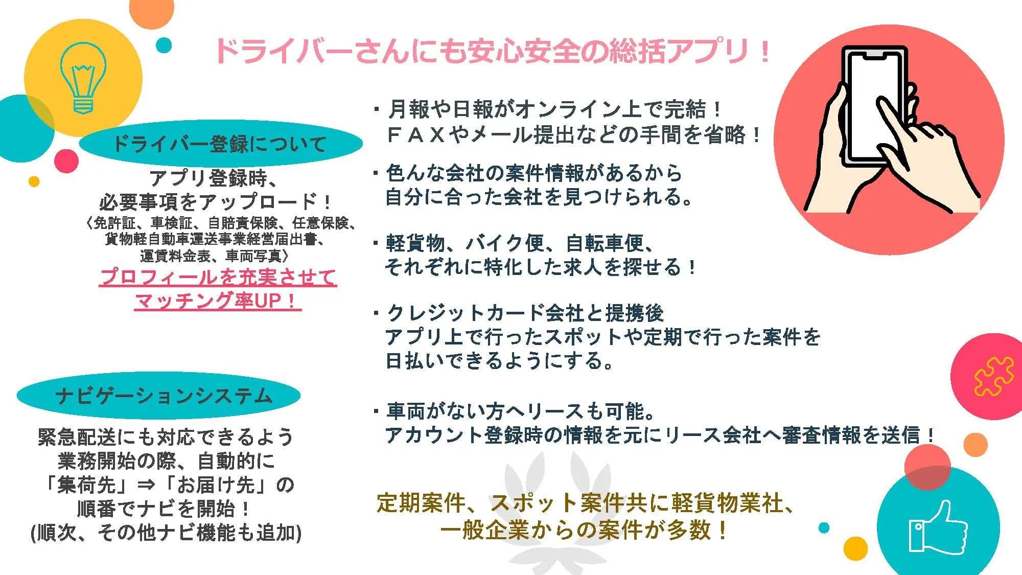 荷主の方も、軽貨物配送をお願いされる時は、最初にこのアプリを利用してくれると嬉しいです。