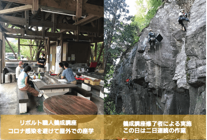 1990年から開拓された3つのエリアも全国の他のクライミングエリア同様、ボルト老朽化が進んでおり、開拓当時は普通に使用されていたボルトや終了点も現在ではその強度が不安視されている物が多く有ります。そこで2021年夏よりクライムワークス主催のリボルト講習会を受講し本格的なリボルト作業を開始しました。