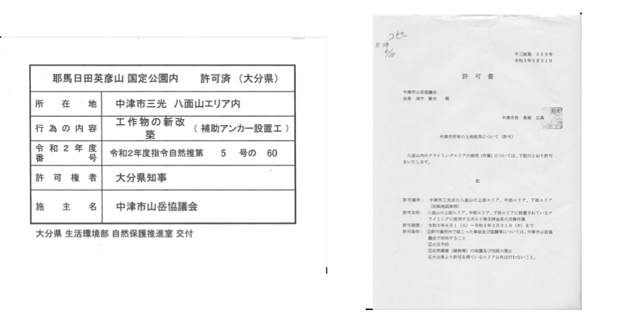 ・令和3年3月に大分県、地権者の中津市にリボルトのための申請書を提出、許可を得る