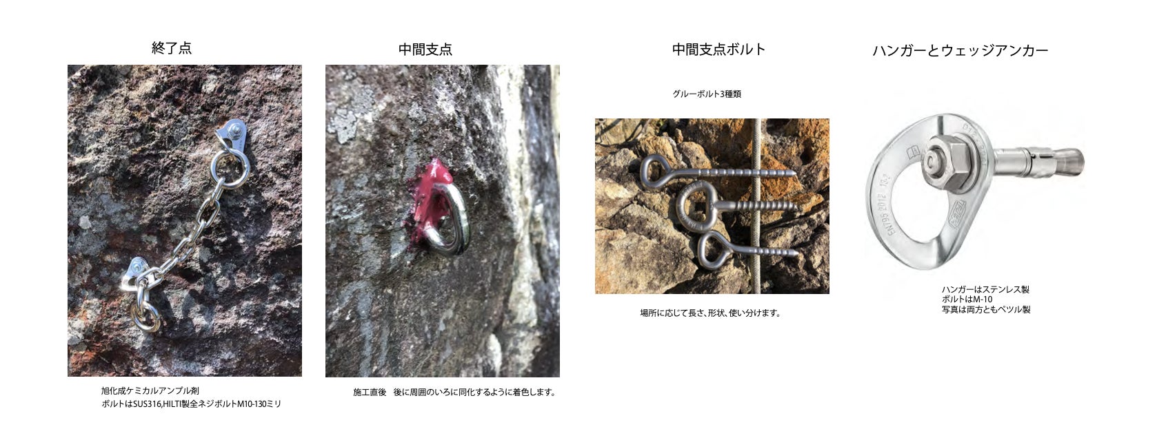 1990年から開拓された3つのエリアも全国の他のクライミングエリア同様、ボルト老朽化が進んでおり、開拓当時は普通に使用されていたボルトや終了点も現在ではその強度が不安視されている物が多く有ります。そこで2021年夏よりクライムワークス主催のリボルト講習会を受講し本格的なリボルト作業を開始しました。