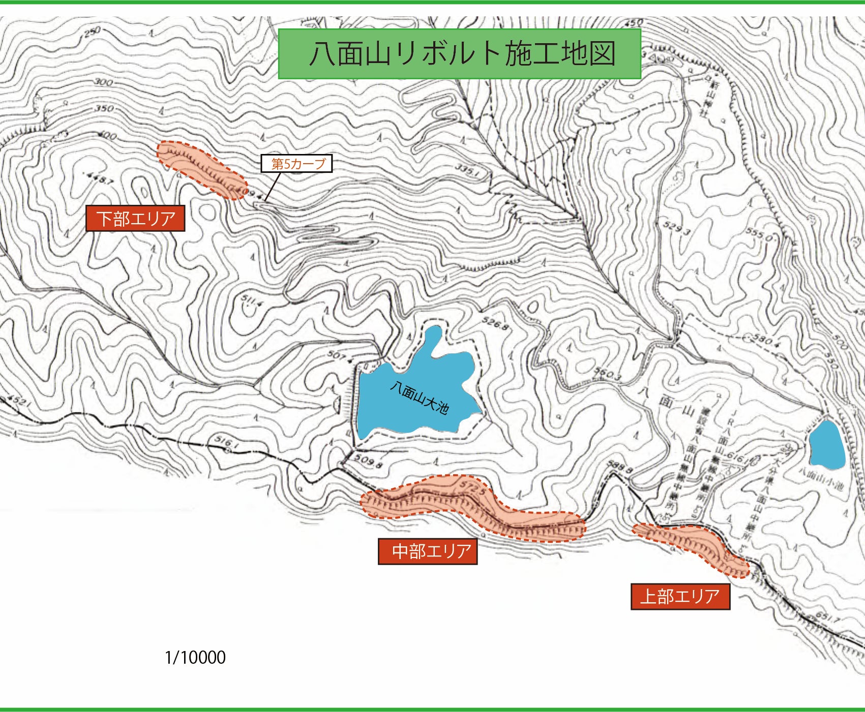 リボルト職人養成講座の受講者を主軸に令和3年9月よりリボルト開始、下部エリアから始め今は中部エリアの作業に入る。開始にあたり募金を募り、クライマー諸氏より50万円余りのご厚志を頂きましたが八面山の岩質上ケミカルボルト使用の部分が多くまだまだ費用がかかります。今回このプロジェクトを立ち上げて広く皆さんに呼びかけ作業を進めたいと思っています。