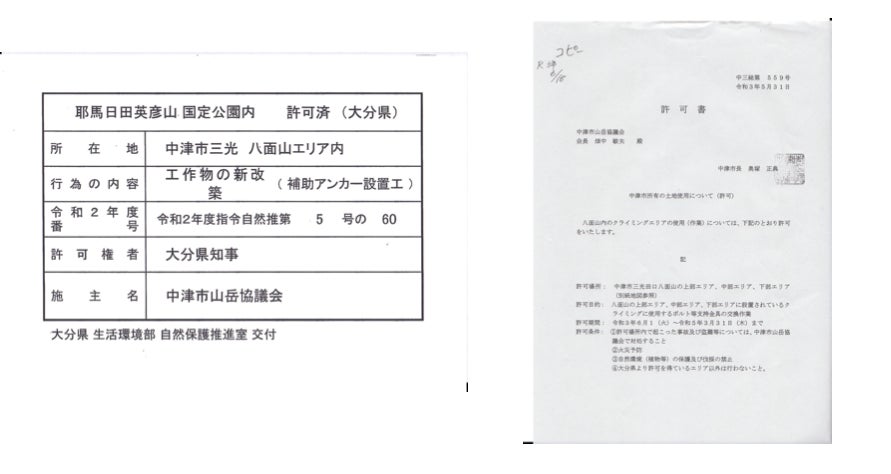 ・令和3年3月に大分県、地権者の中津市にリボルトのための申請書を提出、許可を得る