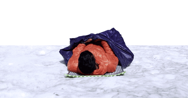 寝袋が湿ってなかなか温まらず寝れない・・・