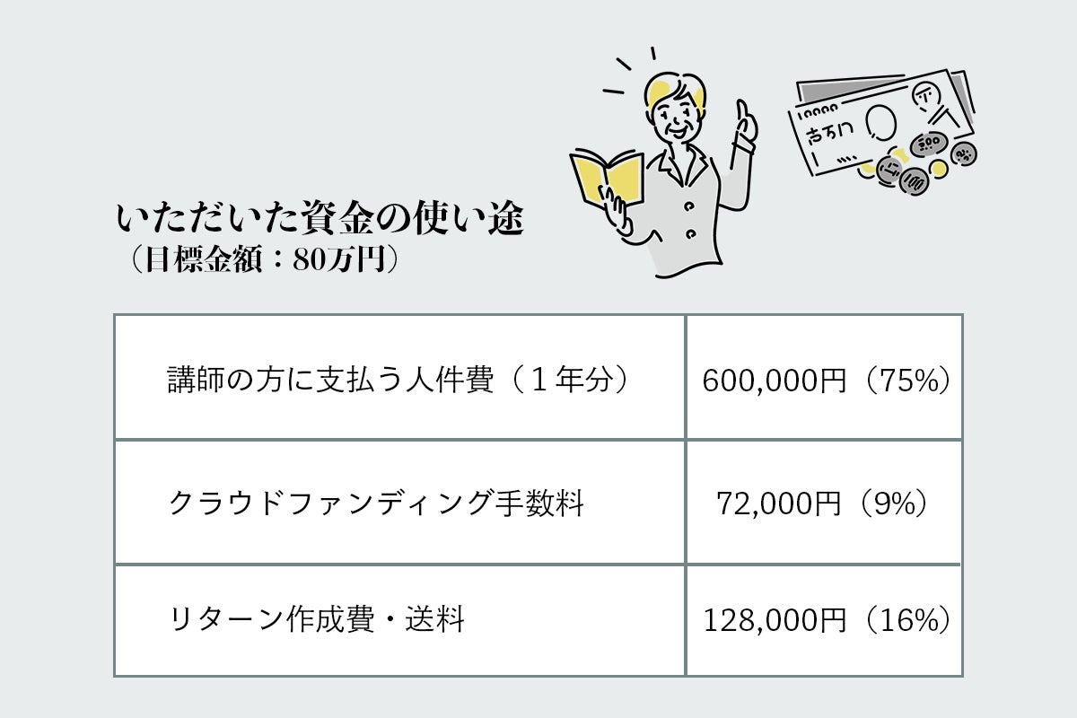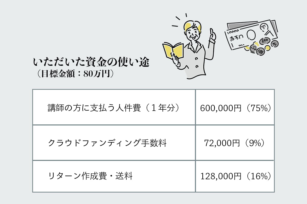 このサイクルを循環させてはじめて、プロジェクトが成功と言えるのだと、わたしたちは考えています。その上で、今回のクラウドファンディングでご支援いただいたお金は