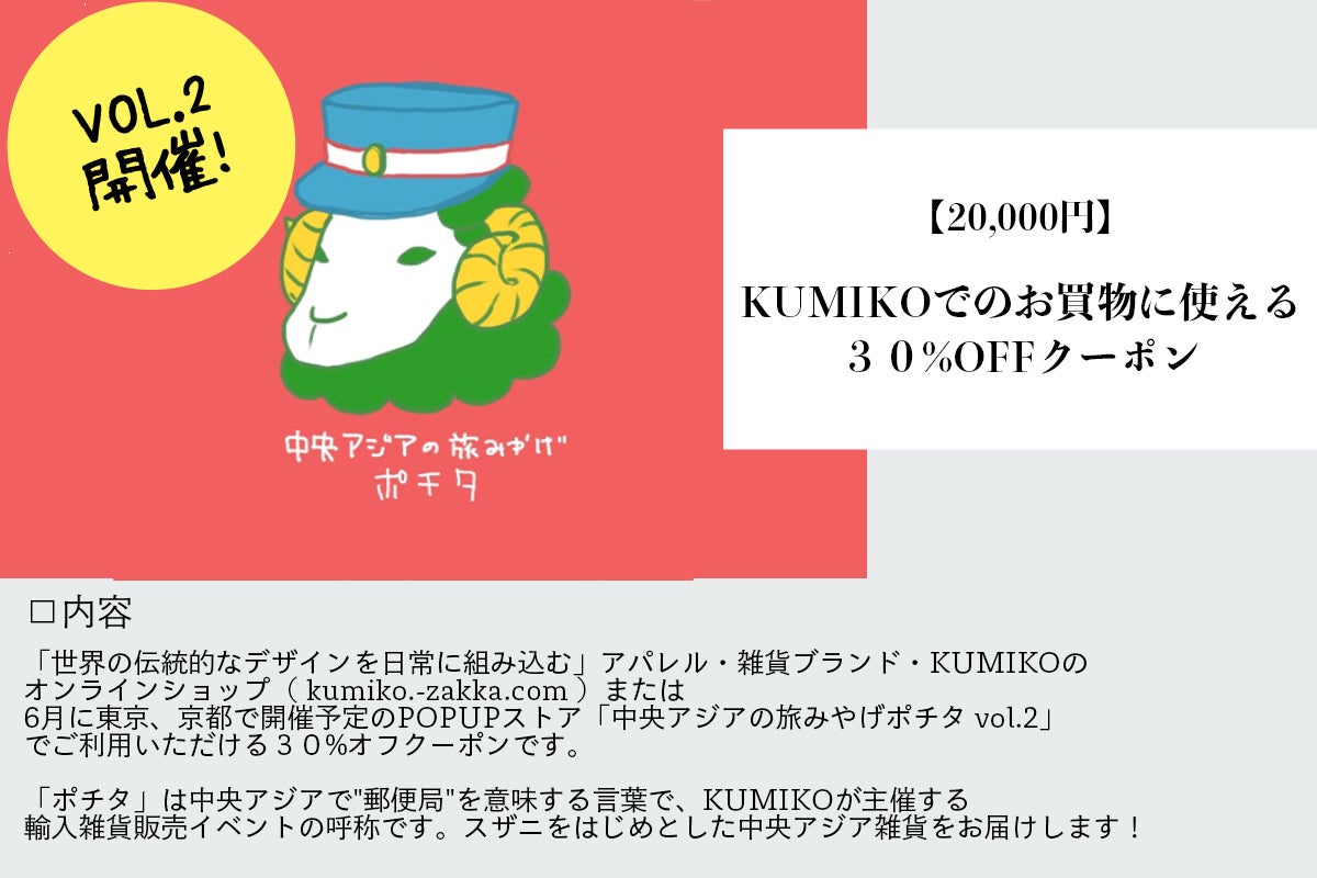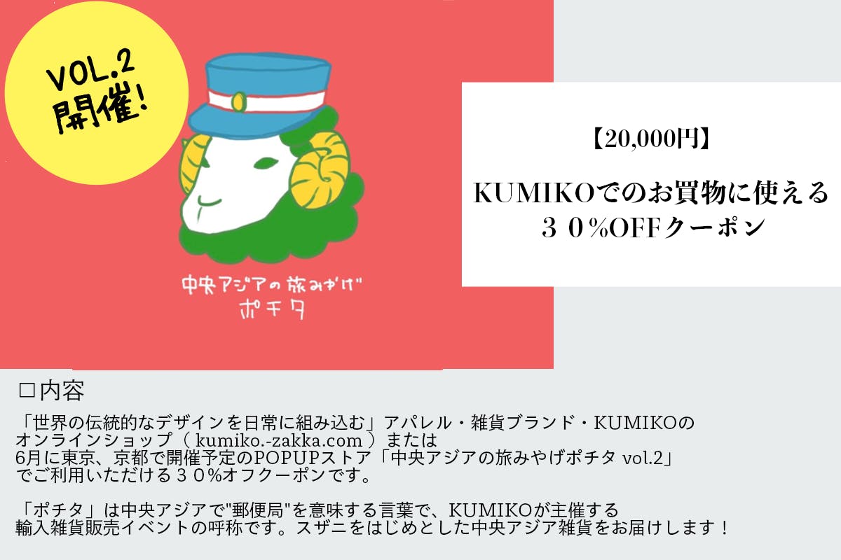 内容:KUMIKOがウズベキスタンほか数カ国から輸入する雑貨の販売。詳細は後日メール、若しくはKUMIKO(@kumikofficial)とポチタ(@pochita_zakka)の公式Twitter、Instagramで確定次第ご連絡いたします。