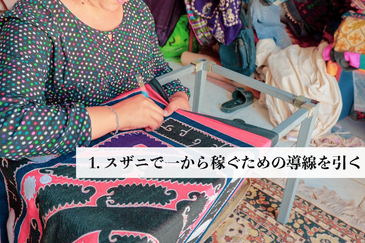 まず一つ目は、のりこ学級近隣に暮らす子どもや女性たちに、スザニで一から稼ぐための導線を引くこと。