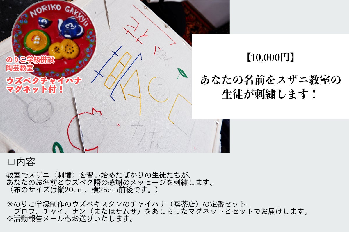 「スザニ教室に先生をお呼びするための人件費」として使わせていただきます。
