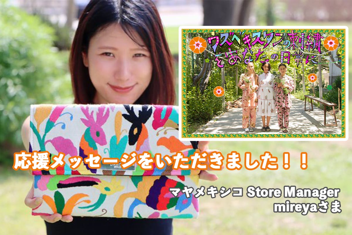 KUMIKO代表もりやまです。今日はメキシコのマヤ族女性による手刺繍のオリジナルブランドから、メキシコの若手デザイナーが手掛けるブランド、動物愛護を目的としたブランド、環境に配慮したブランド…などサステイナブルな商品を取り扱うブランドを発掘しているセレクトショップ「マヤメキシコ」のStore Maneger、mireyaさまに、本プロジェクトに応援メッセージをいただきましたので、ご紹介いたします!
