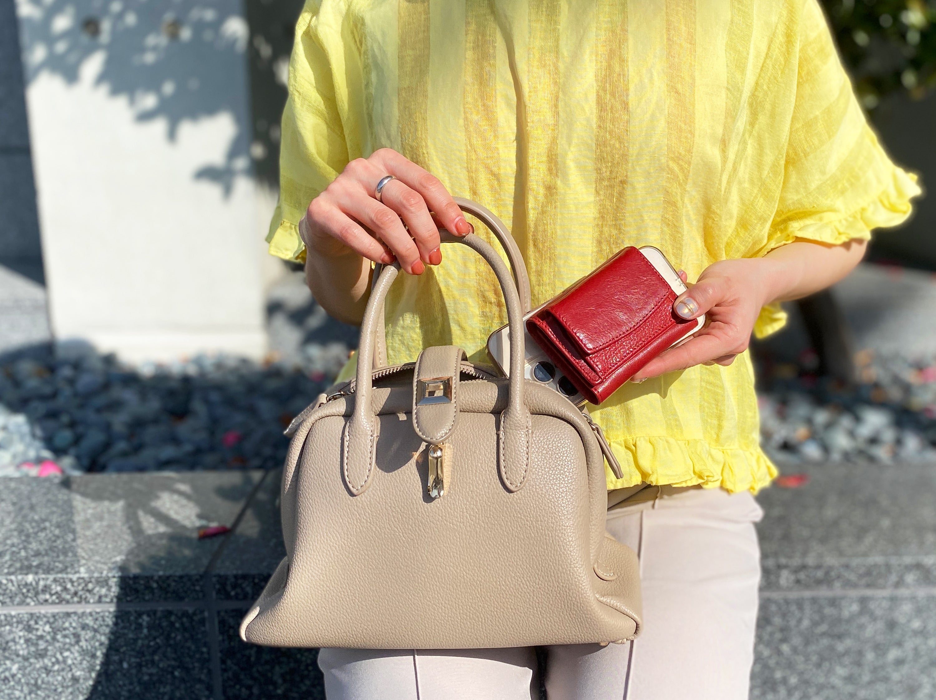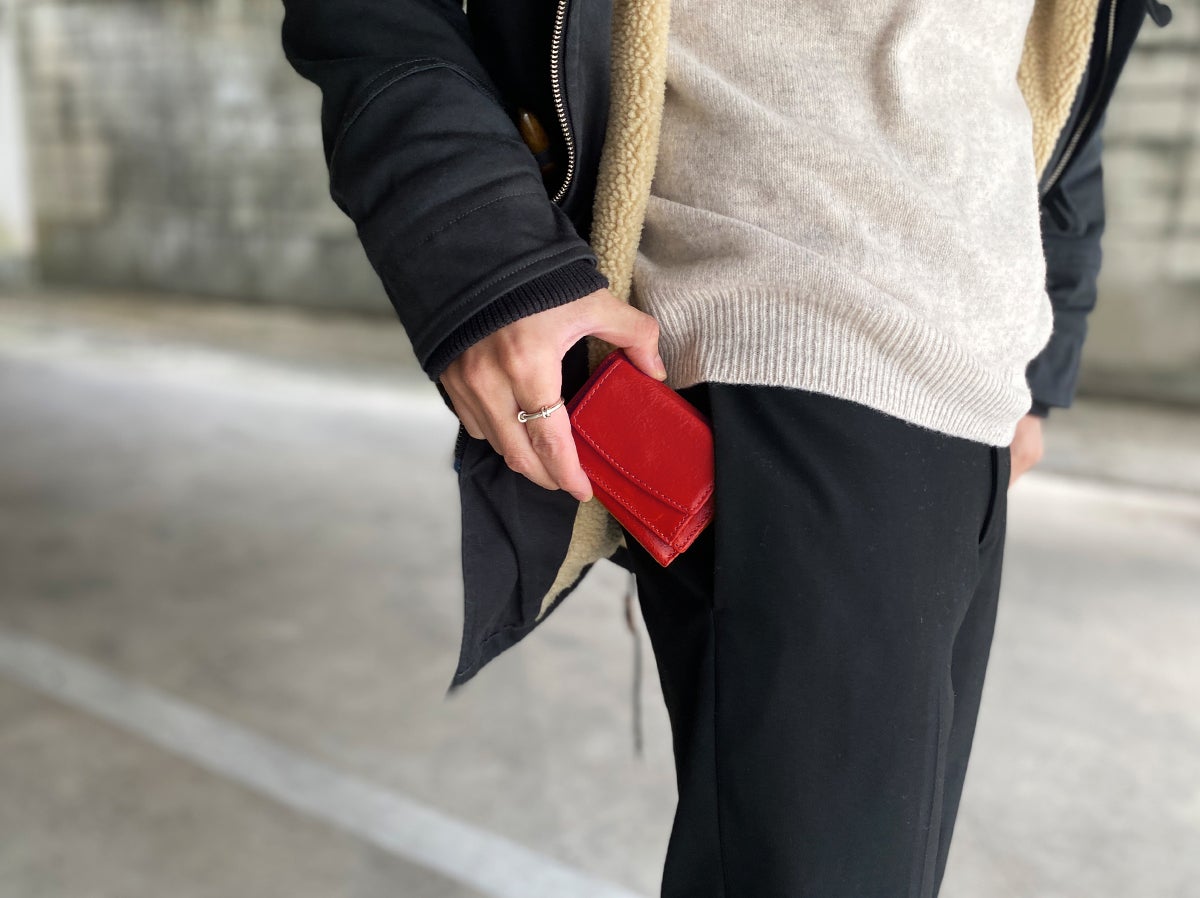 落ち着いた赤なのでコーデに合わせやすく、差し色にもなります。